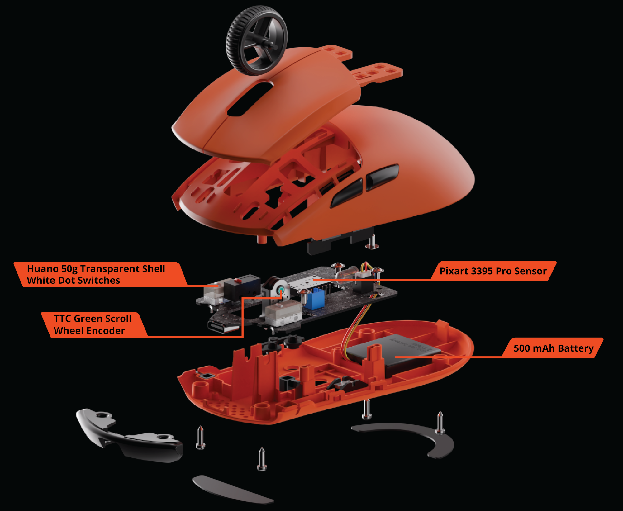 500mAh Battery - One of the largest battery capacities in any lightweight gaming mouse